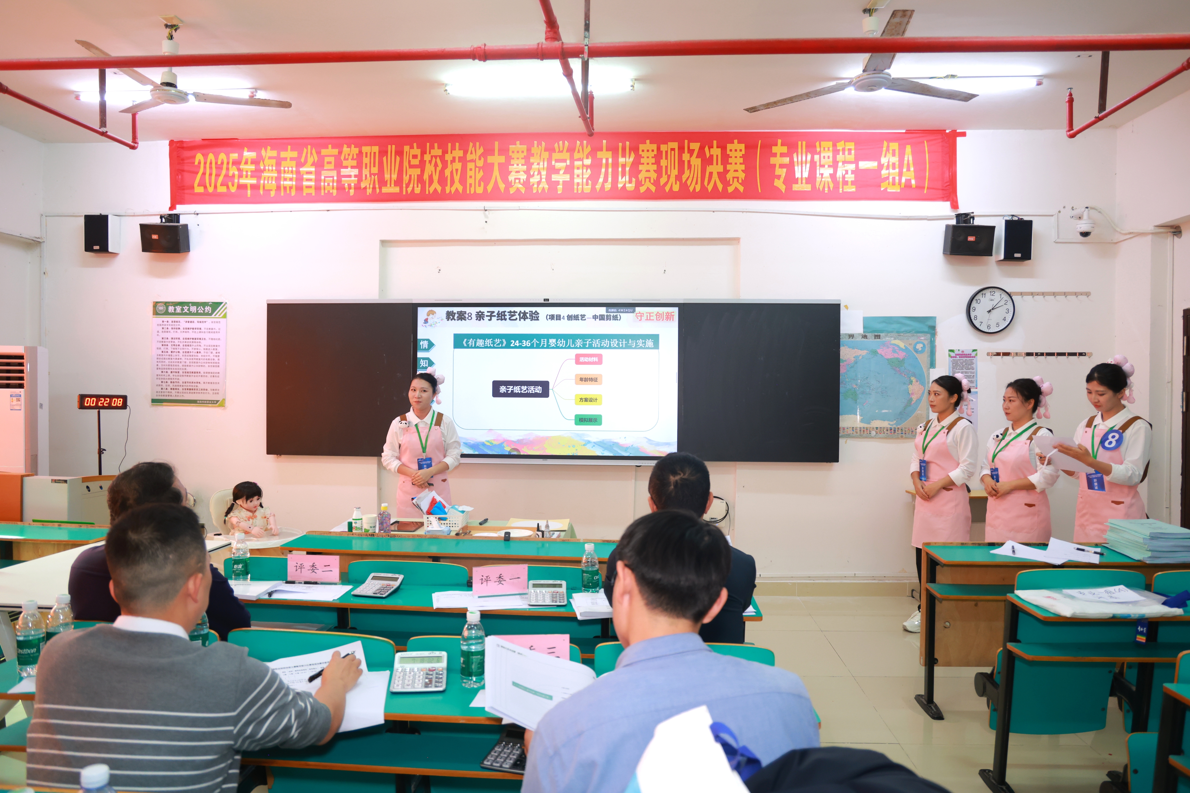 同时,多支团队凭借各具特色的参赛作品荣获二等奖:王海霞、符秀娟、张超老师的《肠胃清道夫——泻下消食药的应用》,聚焦医药卫生岗位实操需求,强化理论与实践结合;陈颖、陈文妍、胡佳佳、马丽娜团队的《应“急”有方,护“航”有术——客舱应急处置任务实践》,依托航空服务专业核心课程模块,精准复刻客舱应急场景,提升学生岗位实操能力;夏青青、郭倩、杨波、李敏团队的《装配式别墅建模》,紧扣建筑行业新技术、新规范,培养学生数字化建模核心技能;韦泽晶、师丽敏、曹霞老师的《猪疫病控制》,立足畜牧兽医专业岗位需求,强化疫病防控实操能力培养。此外,任青青、陈蕾洁、符永坤团队的《海南糟粕醋:非遗风味电商养成记》,将地方非遗文化与电商运营技能相结合,兼具文化传承与技能育人特色,荣获三等奖。