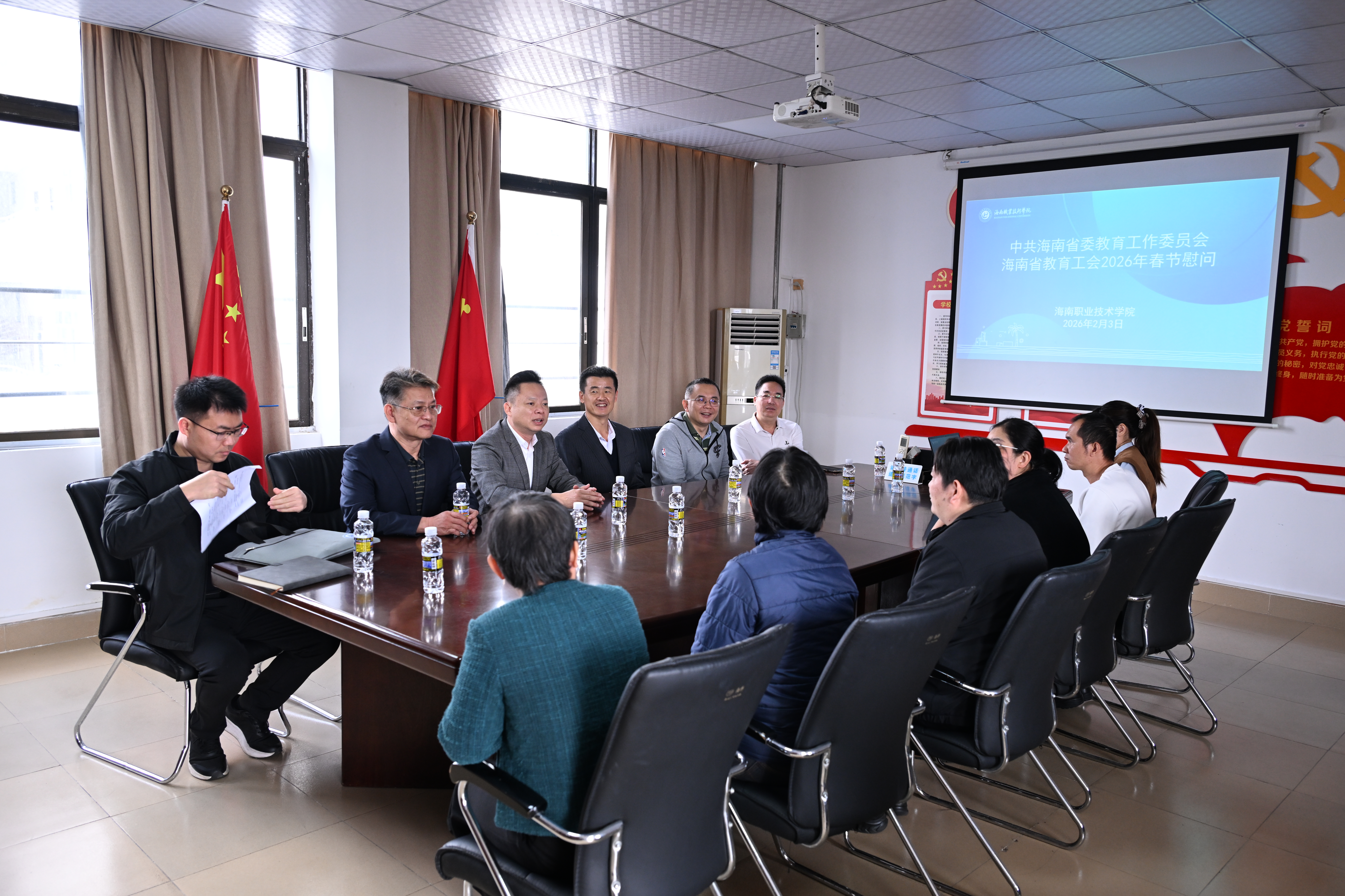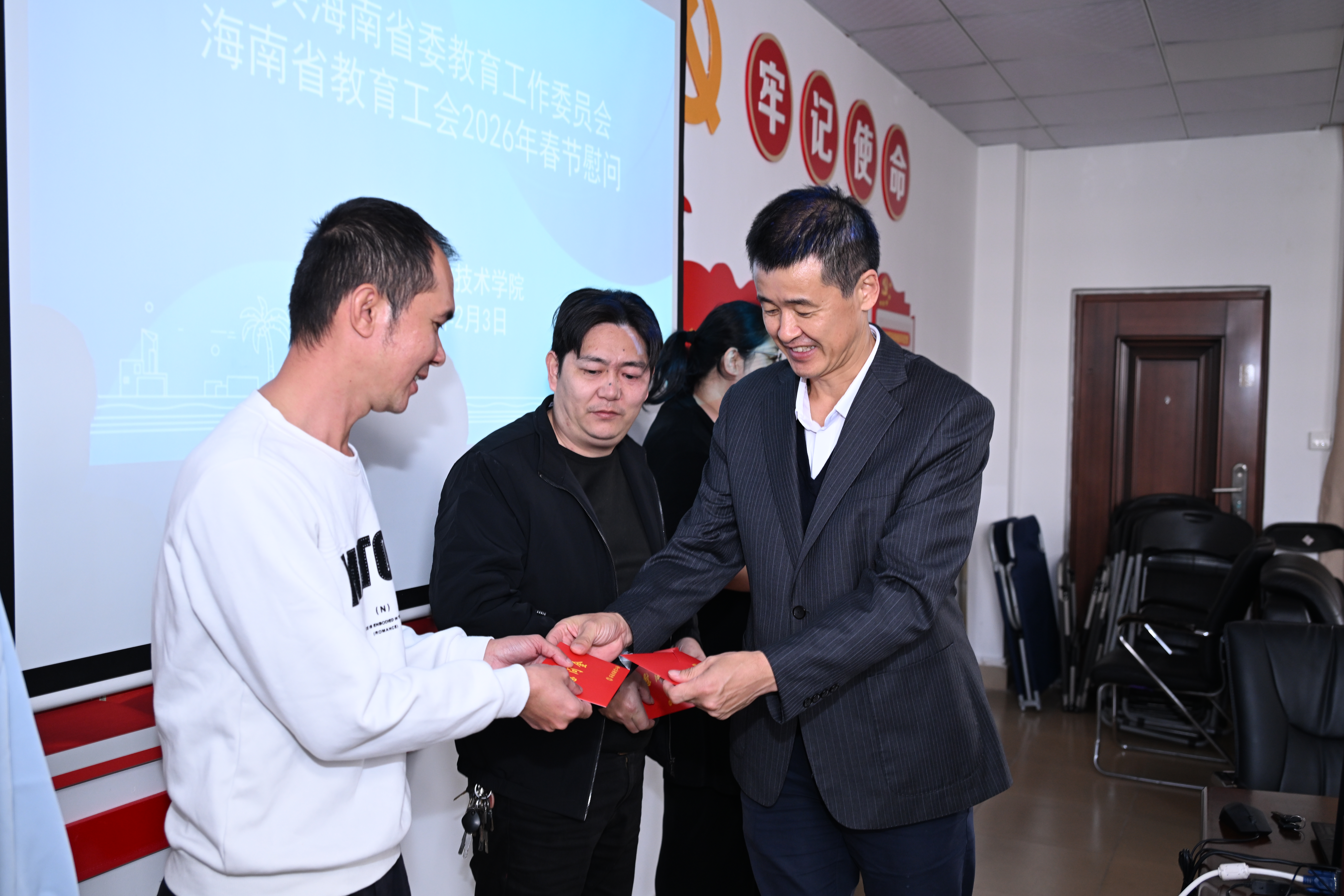 会上,孟梓岩代表省委教育工委、教育工会为BEAT365官网师生送上了新春祝福,强调了省委教育工委和省教育工会对广大教职员工的深切关怀,感谢他们为教育事业做出的贡献,并对学校一年来取得的成绩表示肯定。同时希望大家今后再接再厉助力学校新发展,共享机遇助力海南新发展。周炳才代表学校党委、全体教职工对省委教育工委、教育工会领导的关怀慰问表示衷心感谢。新的一年,学校将一如既往推进各项工作落实落地,推动学校各项事业高质量发展。